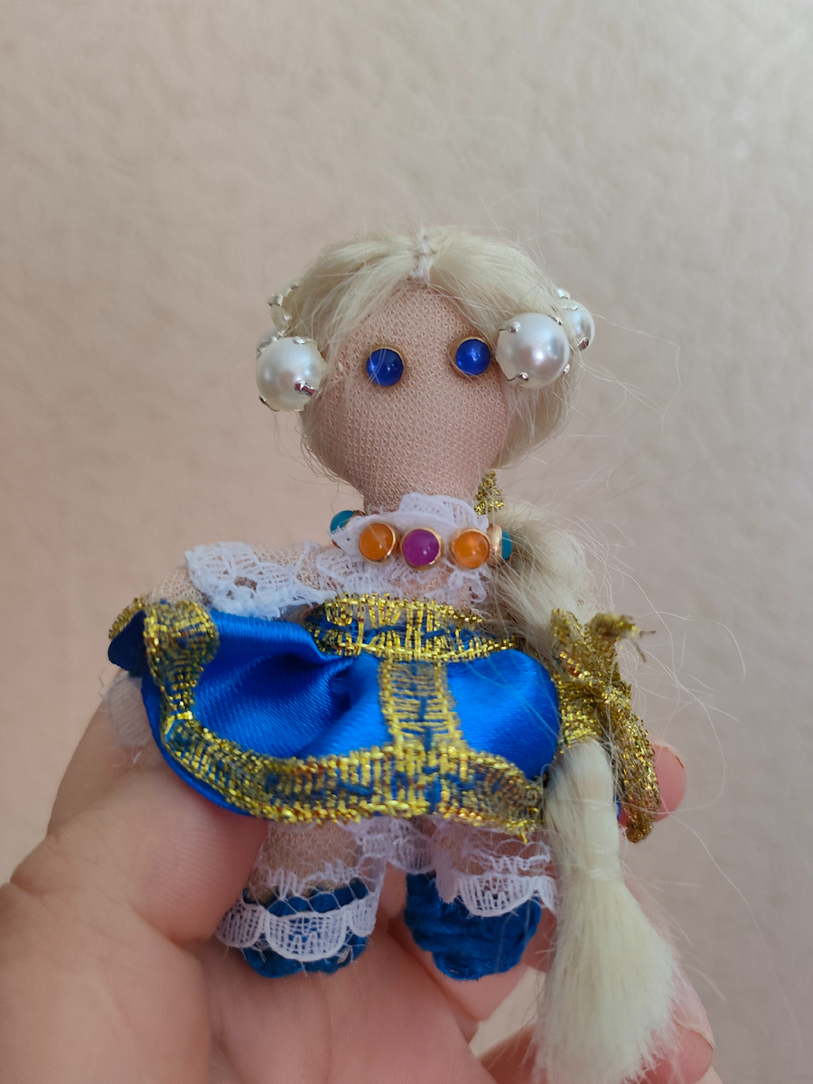 Да, вчера я оторвалась...За день закончила одну куклу - феюшку, тут же сделала другую - Аннушку. Дело в том, что большую Аннушку таскать по путешествиям как-то неудобно. Вот давно и задумала сделать миниатюру. А вчера вообще пришла мысль - брошь. Сказано - сделано. Вот такая маленькая, реально маленькая, Аннушка получилась. Зато её то можно взять везде. А это для сравнения масштаб двух вчерашних работ. Как Вам?