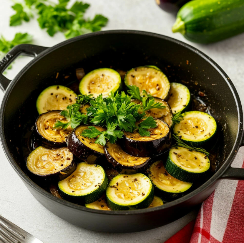 Кабачки с баклажанами на сковороде – это простое, быстрое и очень вкусное овощное блюдо, которое идеально подойдет для гарнира, закуски или легкого ужина! Обжаренные овощи сохраняют свою сочность и приобретают приятный аромат, а соевый соус и чеснок придают им пикантный вкус. Это блюдо очень легко приготовить, и оно непременно понравится всем любителям овощей. Начнем с подготовки овощей. Кабачки (350 г) вымойте и нарежьте кружочками или полукружочками. Баклажаны (350 г) вымойте, удалите плодоножки и нарежьте кружочками или полукружочками. Если баклажаны горчат, посыпьте их солью и оставьте на 15-20 минут, а затем промойте и обсушите. Чеснок (2 зубчика) очистите и мелко нарежьте или пропустите через пресс. В сковороде разогрейте растительное масло на среднем огне. Выложите нарезанные кабачки и баклажаны в разогретую сковороду. Обжаривайте овощи, помешивая, до мягкости и легкой золотистости, примерно 10-12 минут. Добавьте измельченный чеснок в сковороду с овощами. Обжаривайте еще 1-2 мин