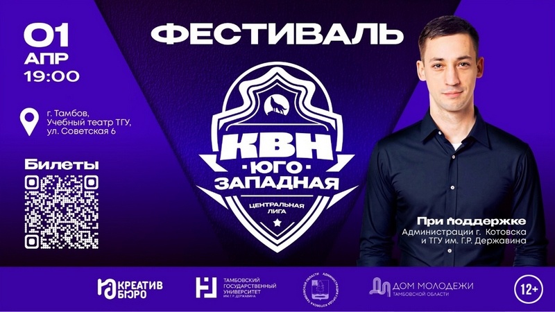 1 апреля в учебном театре ТГУ им. Г.Р. Державина состоится отборочный фестиваль Центральной Юго-Западной лиги КВН, новый сезон которой в этом году будет проходить в Котовске и Тамбове.