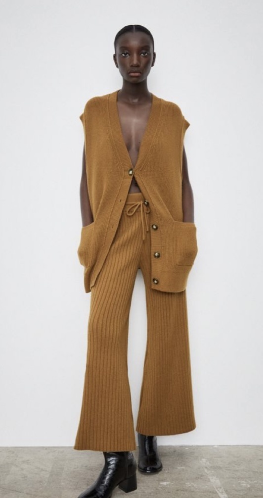 Вязаные женские костюмы не особо популярны среди любителей вязания. Однако, в последнее время, такие костюмы все больше и больше врываются в моду. А ведь, на самом деле, трикотажные костюмы очень удобны и комфортны. В этой статье я сделала подборку двух видов костюмов - брючных и с юбкой. Брючные костюмы отлично подойдут для весны. Вяжут их из тонкого кашемира, хлопка и даже буретного шёлка. Трикотажные брючные костюмы по стилю больше подходят к спортивно-домашнему и подойдут для активных людей, которые много двигаются, предпочитают обувь без каблука и любят комфорт. Как видите, верх костюма может быть любой - джемпер, свитер, безрукавка или футболка, с любым узором. А вот брюки вяжут, в основном, лицевой гладью, либо так называемой "лапшой"- резинкой один на один, два на два и так далее. Брюки могут быть прямого покроя или зауженными к низу, собранными на манжет. Данный комплект с распашным верхом, связан попупатентной резинкой. Есть плюсы и минусы такого костюма. Таким способом вя