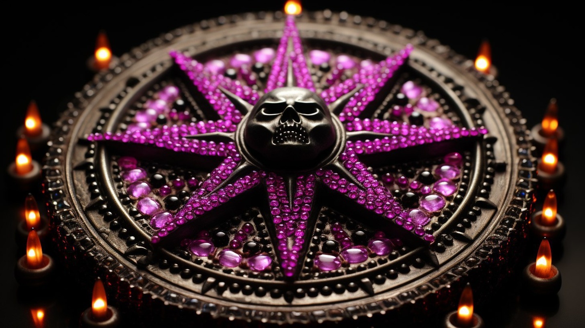 Создано на основе запроса: beadwork art of detailed runic banners, crafted of shimmering beads