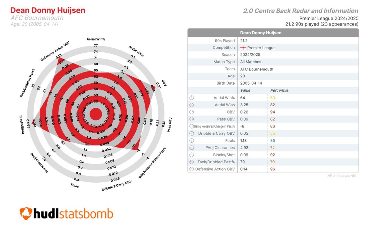 Дин — один из лучших среди защитников по показателю OBV. Эта метрика говорит, насколько его действия приносят команде пользу (например, создают моменты, мешают сопернику и проч.)