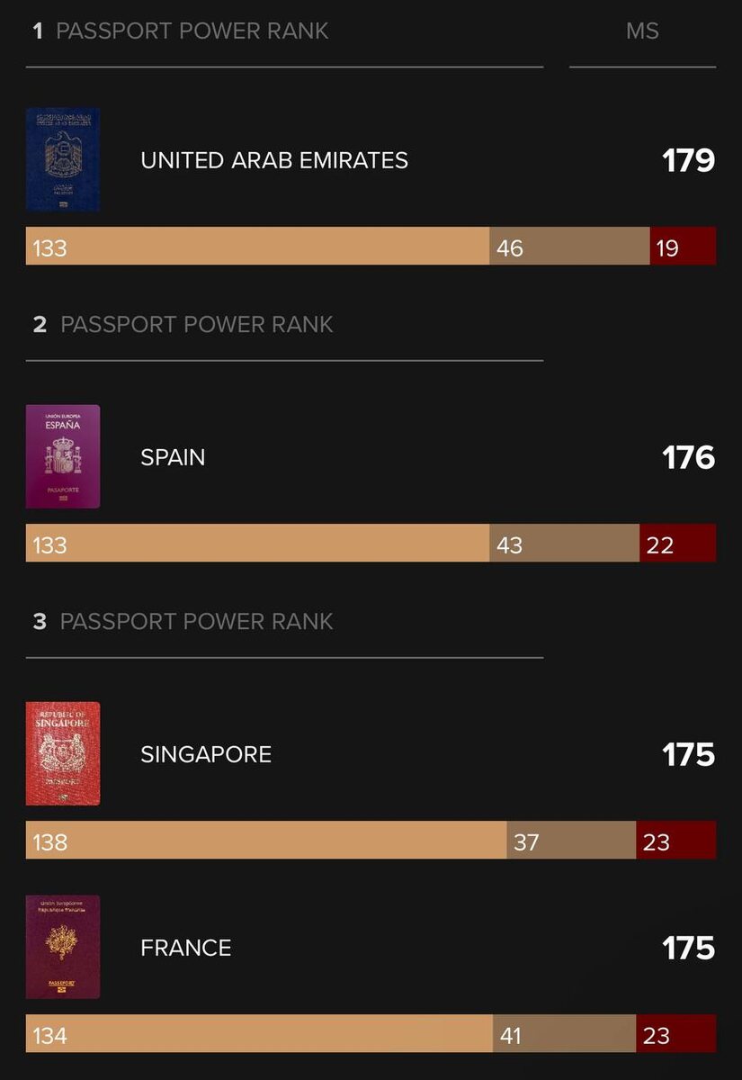 Есть такой довольно бессмысленный рейтинг «Силы паспорта» — чем в большее количество стран можно ездить без визы, тем сильнее паспорт