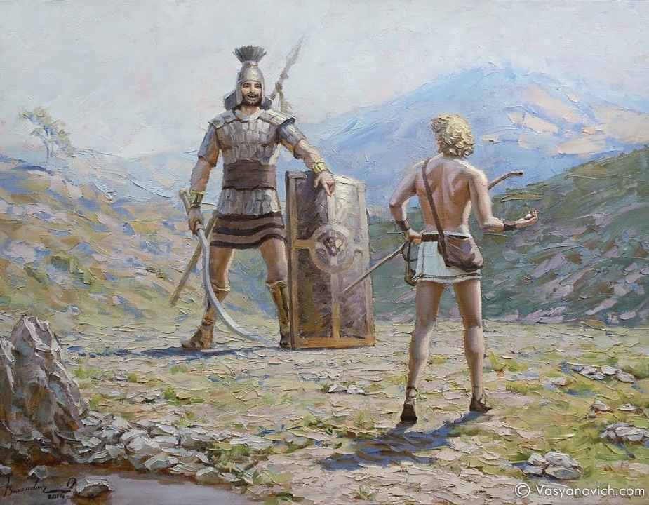 История Давида и Голиафа (1 Царств 17) **1. Голиаф как символ подавляющего страха** — Голиаф — огромный, хорошо вооруженный воин, который **насмехается** над израильтянами, вызывая у них ужас. — **Психологическая интерпретация**: - Это **воплощение внутреннего монстра** — непреодолимой, на первый взгляд, проблемы (депрессия, неуверенность, травма). - Его **доспехи** (броня, меч, копье) — символы кажущейся неуязвимости страха. 2. Давид — образ веры в свои силы — Давид — юный пастух, **не обученный военному делу**, но уверенный в своей правоте. — **Психологическая интерпретация**: - Он олицетворяет **подлинную самоэффективность** (веру в свои способности, несмотря на внешние оценки). - В отличие от солдат, которые видят только силу Голиафа, Давид **фокусируется на его слабостях** (гигант неповоротлив, зависит от брони). 3. Отказ от "чужой брони" (неподходящие стратегии) — Саул предлагает Давиду свои доспехи, но тот отказывается. — **Психологическая интерпретация**: - П