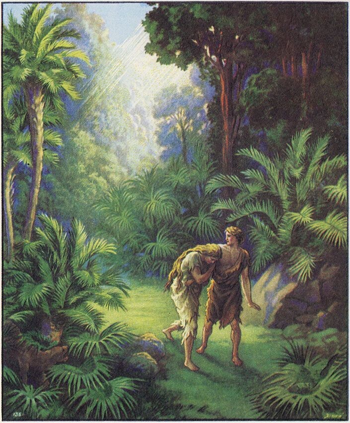История Адама и Евы 1. Пробуждение самосознания (осознание добра и зла) — Древо Познания Добра и Зла символизирует переход от бессознательного, инстинктивного существования к осознанию себя, морали и последствий своих действий. — Это можно сравнить с процессом взросления, когда ребенок осознает, что его поступки имеют последствия, и начинает различать "хорошее" и "плохое". 2. Грехопадение как кризис развития — Нарушение запрета (вкушение плода) можно рассматривать как неизбежный этап сепарации от "райского" состояния (зависимости, инфантильности). 3. Стыд и самоосознание — После грехопадения Адам и Ева осознают свою наготу и прячутся. Это можно интерпретировать как рождение самосознания и чувства стыда. 4. Изгнание из Рая — Рай символизирует бессознательное единство с природой, а изгнание — начало индивидуации (становления личности). — Труд, страдания и смерть после изгнания отражают необходимость взросления, принятия ответственности и экзистенциальных вызовов. 5. Архетипич