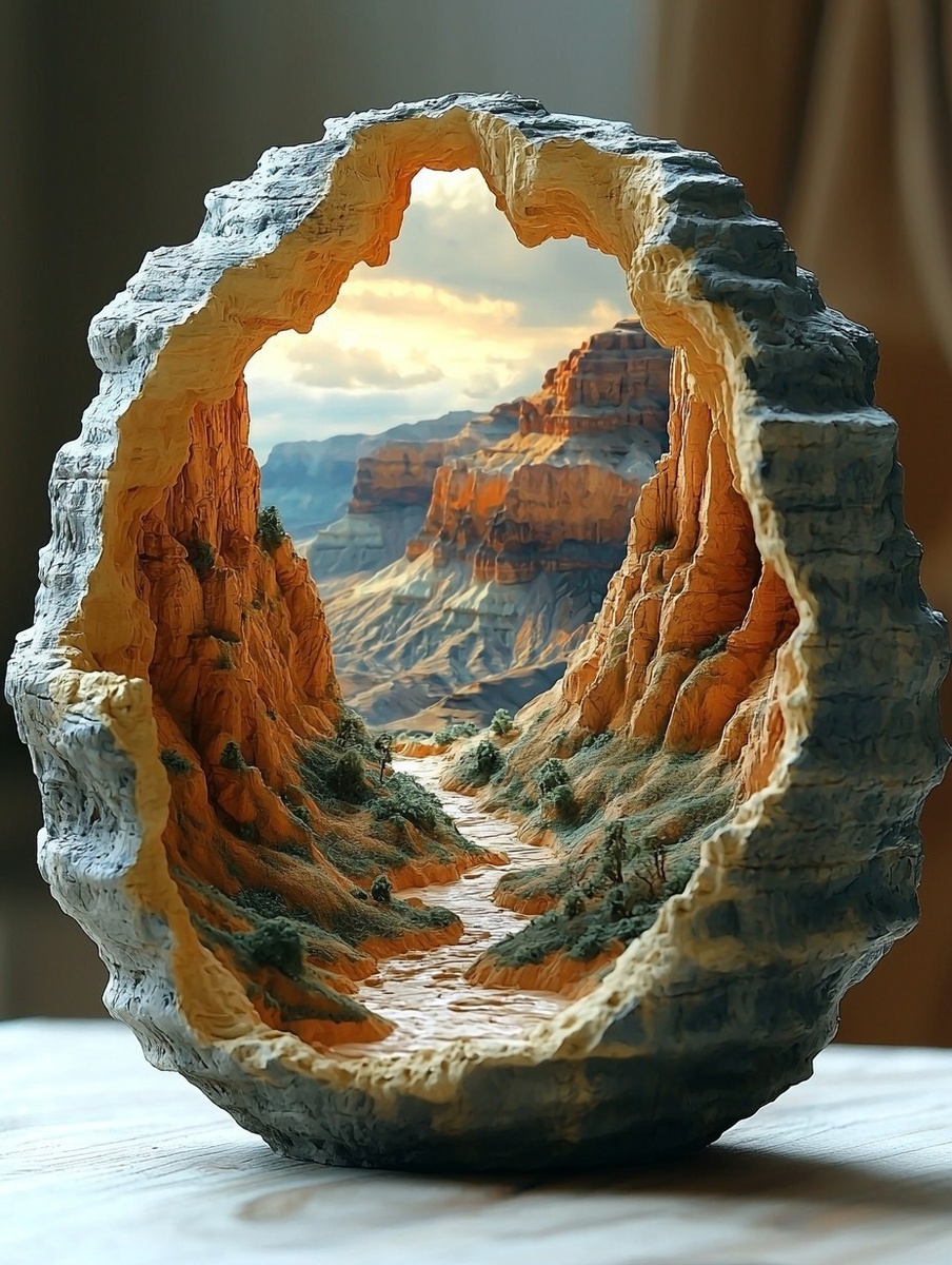 Создано на основе запроса: surreal depiction of the Grand Canyon summarized inside a stone