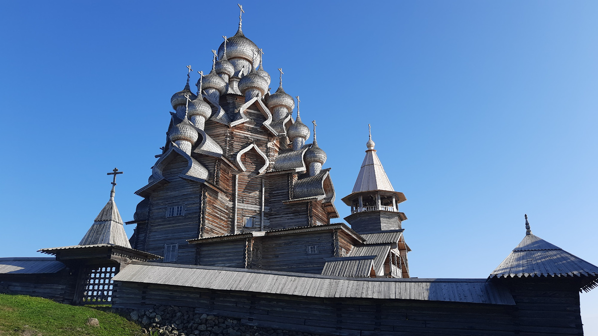 Уникальная церковь срублена из сосны, её 22 главы покрыты осиновым лемехом. Высота шедевра 37 метров, длина 29, ширина 20,6 метра.