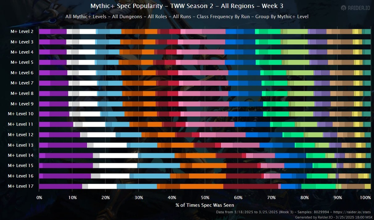 Популярность спеков в Mythic+ для TWW Сезон 2 - Неделя 18 марта