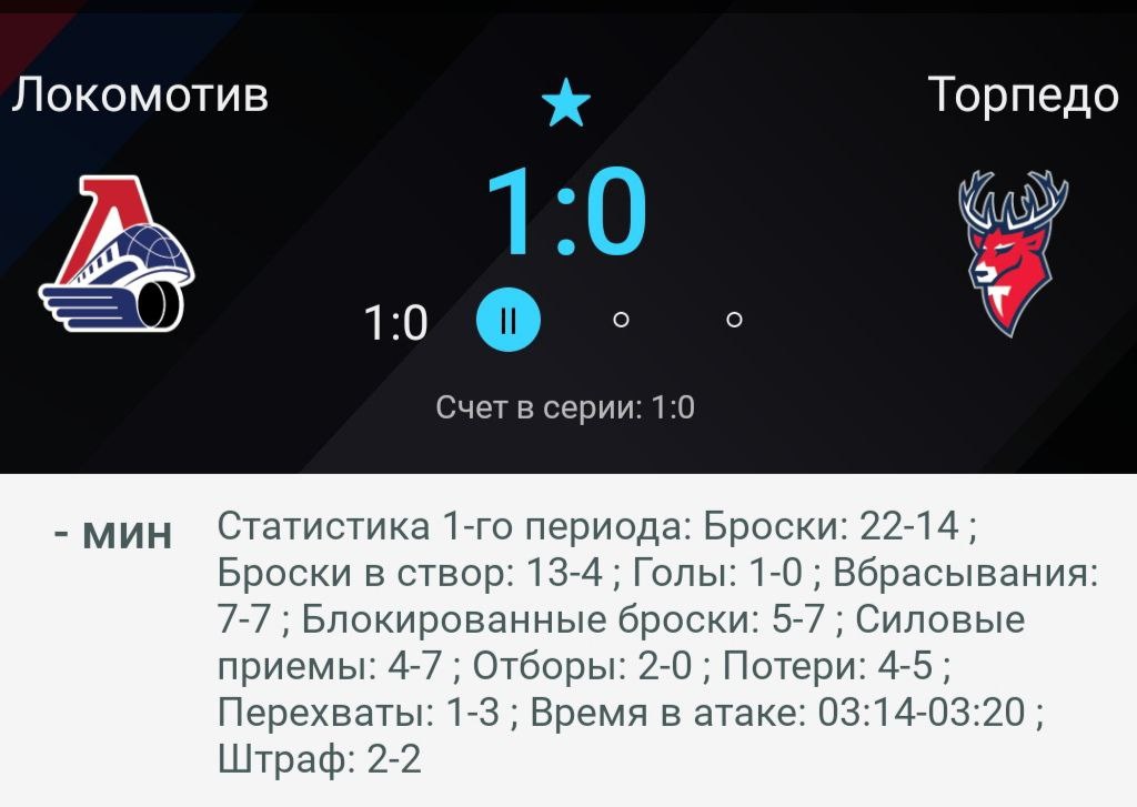 Завершился первый период. Из позитивного: в первом периоде буквально в течение минуты увидел силовые приёмы Фирстова, Свечникова, Белевича, снова Свечникова, и снова Белевича, местные в этот момент немного притихли, а моей уверенности в максимальном настрое «Торпедо» и надежды на благополучный исход прибавилось. Потом Ярославль реализовал большинство (в плей-офф меньшинстве играем намного хуже, чем в регулярке), а нижегородцы ничего не, могли сделать, имея численное преимущество. Это беспокоит