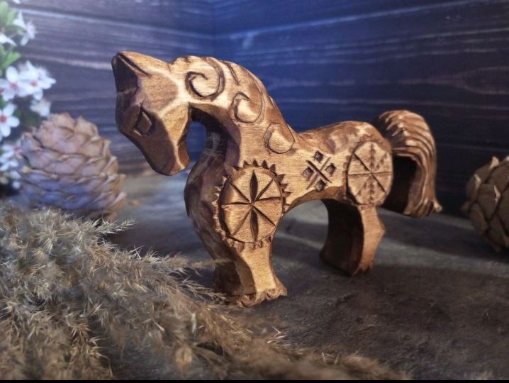 Знаешь ли ты, что у древних славян конь считался священным животным? 🌞 Он был не просто «транспортом» бога Перуна — он символизировал солнечный диск, несущий свет и жизнь. Именно поэтому деревянных коней ставили на крыши, вешали над дверью, дарили детям и молодожёнам — как защиту от зла и проводников удачи!