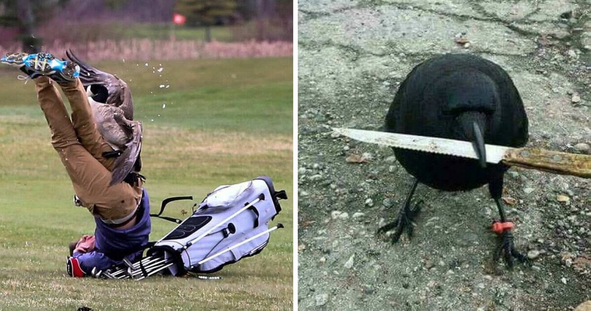 Если мы слышим слово «птица», в воображении сразу всплывают идиллические картинки: утренний щебет за окном, нежные перышки, голуби на площади и воробьи, клюющие крошки. Но не всё так невинно, как кажется! За этими милыми клювами и пушистыми хвостиками порой скрываются настоящие пакостники — и эта фотоподборка тому прямое доказательство. Будь то ворона, целенаправленно закрывающая дорожную камеру, или чайка, воровато утаскивающая мороженое у ничего не подозревающего туриста — птицы умеют быть настоящими хулиганами. Иногда их выходки вызывают смех, иногда — гнев, но чаще всего — восхищение их сообразительностью и наглостью. Мы нашли для Вас самые яркие кадры, чтобы вы могли убедиться: птицы — это не просто символ свободы, но и маленькие специалисты по «саботажу». Играл в гольф, но попал не в лунку, а под раздачу. Гусь решил, что это его поле, и никаких фраеров тут не нужно. Оставил пиццу на минутку без присмотра — и всё. Теперь какой-то чайка ест её на высоте 200 метров и, возможно, у се