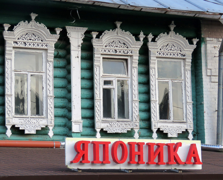 С другой стороны - дом купца Крашенинникова с резными наличниками (он на вводном кадре), башня местного "Сбербанка" и типовой советский кинотеатр, ныне занятый всякой всячиной с Центром поддержки предпринимательства во главе.