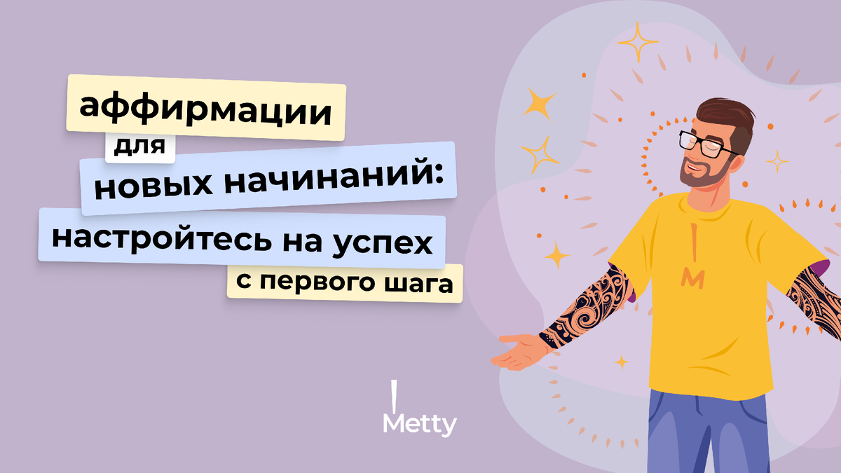 Поэтому опытные в личностном развитии люди применяют энергетически мощные фразы именно во время сессий по расширению внутреннего мира, ментальной гибкости, психическим тренингам и прочим периодам работы над собой. Опробуйте такой подход и вы, а начать здесь всегда можно с классических техник из приложения Metty, отлично подходящих для реализации аффирмаций под новые начинания: