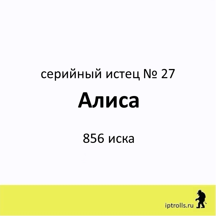 Мы собрали информацию о правообладателях, массово подающих претензии и иски в защиту авторских прав и прав на товарные знаки, а также полезные материалы и рекомендации, чтобы вы могли: Сейчас в базе более 60 серийных истцов. Вы можете проверить, не нарушаете ли вы чьи-то интеллектуальные права в рамках своего бизнеса или проекта, получить ответы на популярные вопросы и проконсультироваться. Правообладатель Алиса внесен в базу IPTrolls под № 27. Переходи в карточку правообладателя на сайте IPTrolls, чтобы узнать больше. Если вы не нашли ответ на свой вопрос, посмотрите другие материалы проекта или напишите нам через форму на сайте. _____________________ команда проекта IPTrolls 🕵🏻♂️Следите за обновлением базы