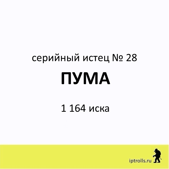 Мы собрали информацию о правообладателях, массово подающих претензии и иски в защиту авторских прав и прав на товарные знаки, а также полезные материалы и рекомендации, чтобы вы могли: Сейчас в базе более 60 серийных истцов. Вы можете проверить, не нарушаете ли вы чьи-то интеллектуальные права в рамках своего бизнеса или проекта, получить ответы на популярные вопросы и проконсультироваться. Правообладатель ПУМА внесен в базу IPTrolls под № 28. Переходи в карточку правообладателя на сайте IPTrolls, чтобы узнать больше. Если вы не нашли ответ на свой вопрос, посмотрите другие материалы проекта или напишите нам через форму на сайте. _____________________ команда проекта IPTrolls 🕵🏻♂️Следите за обновлением базы