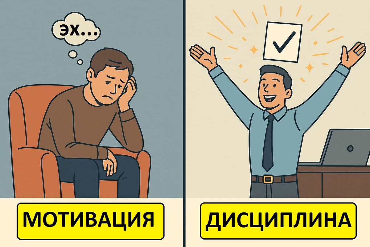 Раньше я ждал вдохновения, настроения, того самого дня когда проснусь и все сделаю! Знаете сколько дел не сделал за это время? Много! А знаете сколько возможностей упустил? Еще больше! Всем привет меня зовут Денис. В этой статье расскажу почему же по моему мнению дисциплина важнее мативации. Я долго ожидал заряда энергии на котором я возьму и все сделаю, но он так и не приходил. Пока я не осознал: мативация-это вспышка, а дисциплина-это двигатель. Я параллельно работаю в найме, развиваю бизнес по изготовлению печатей и штампов, сдаю недвижимость в аренду, и еще пару небольших проектов, свободного времени не так много но в моменте понял простую истину- я немогу зависеть от вдохновения. Иногда ты уставший, иногда не в духе, а иногда просто лень. Но задачи есть и их никто не отменял. Если выполнять поставленные задачи только по настроению- то ничего не вырастет само собой. Я стал вставать в одно и тоже время, завел ежедневник, в нем фиксировал задачи и выполнение. Утром строю план, пишу