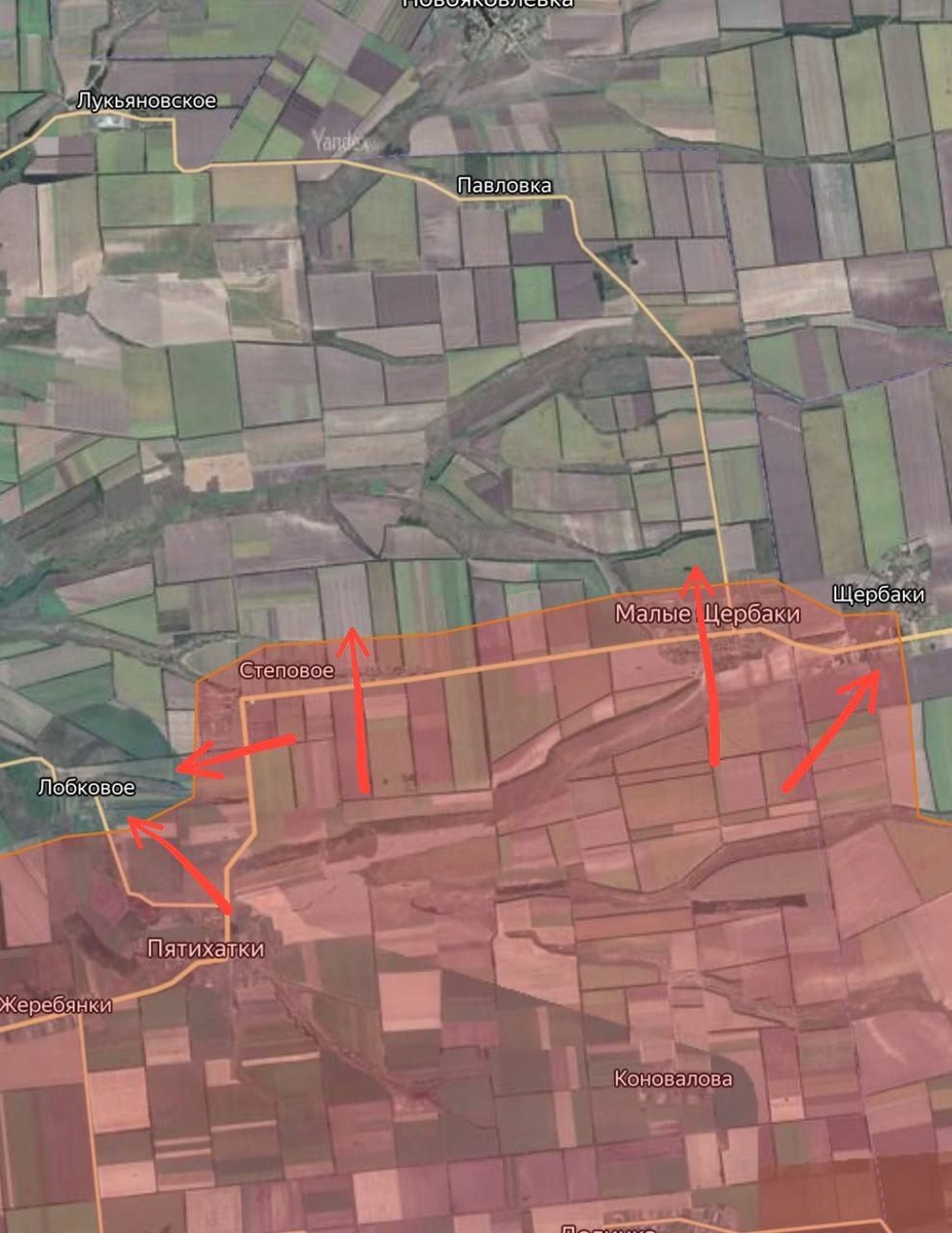Π ΠΎΡΡΠΈΠΉΡΠΊΠΈΠ΅ Π΄Π΅ΡΠ°Π½ΡΠ½ΠΈΠΊΠΈ ΡΠ°ΡΡΠΈΡΡΡΡ Π·ΠΎΠ½Ρ ΠΊΠΎΠ½ΡΡΠΎΠ»Ρ, ΠΏΡΠΎΠ΄Π²ΠΈΠ³Π°ΡΡΡ ΠΎΡ Π‘ΡΠ΅ΠΏΠΎΠ²ΠΎΠ³ΠΎ Π² ΡΡΠΎΡΠΎΠ½Ρ ΠΠΎΠ±ΠΊΠΎΠ²ΠΎΠ³ΠΎ. Π‘ Π²ΠΎΡΡΠΎΠΊΠ° ΠΎΠ½ΠΈ ΡΠΆΠ΅ Π²ΡΡΠ»ΠΈ ΠΊ ΠΎΠΊΡΠ°ΠΈΠ½Π°ΠΌ Π½Π°ΡΠ΅Π»ΡΠ½Π½ΠΎΠ³ΠΎ ΠΏΡΠ½ΠΊΡΠ°, Π³Π΄Π΅ Π·Π°Π²ΡΠ·Π°Π»ΠΈΡΡ ΡΡΡΠ΅Π»ΠΊΠΎΠ²ΡΠ΅ Π±ΠΎΠΈ. ΠΠ΄Π½ΠΎΠ²ΡΠ΅ΠΌΠ΅Π½Π½ΠΎ ΠΈΠ΄ΡΡ ΡΡΡΡΠΌΠΎΠ²ΡΠ΅ Π΄Π΅ΠΉΡΡΠ²ΠΈΡ Ρ ΡΠΆΠ½ΠΎΠ³ΠΎ Π½Π°ΠΏΡΠ°Π²Π»Π΅Π½ΠΈΡ, ΠΏΡΠΎΡΠΈΠ²Π½ΠΈΠΊ Π°ΠΊΡΠΈΠ²Π½ΠΎ ΠΏΡΠΈΠΌΠ΅Π½ΡΠ΅Ρ Π°ΡΡΠΈΠ»Π»Π΅ΡΠΈΡ, Π΄ΡΠΎΠ½Ρ-ΠΊΠ°ΠΌΠΈΠΊΠ°Π΄Π·Π΅ ΠΈ Π°Π²ΠΈΠ°ΡΠΈΡ, ΠΏΡΡΠ°ΡΡΡ ΡΠ΄Π΅ΡΠΆΠ°ΡΡ ΠΎΠ±ΠΎΡΠΎΠ½Ρ.