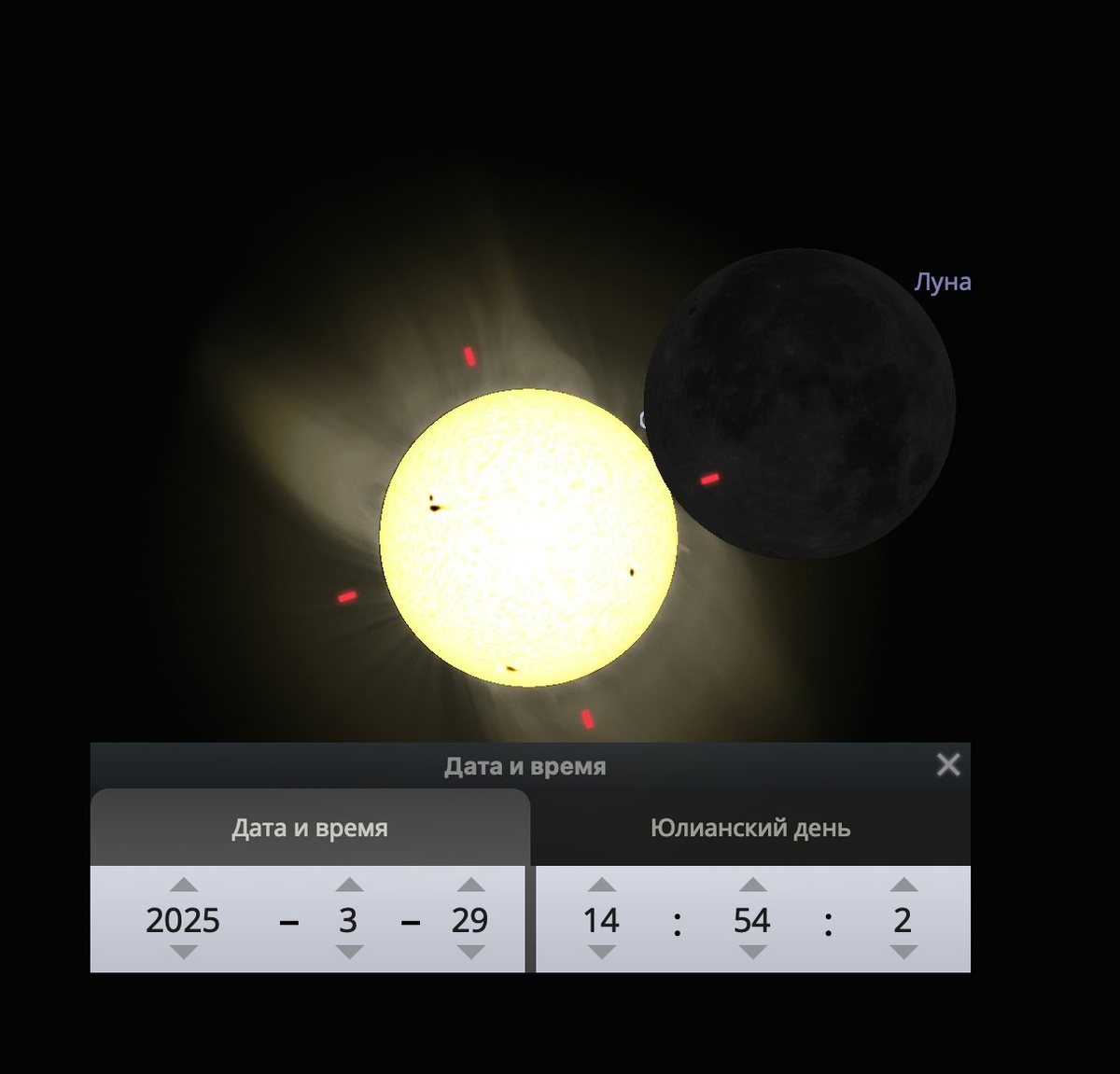 Π‘Π΅Π³ΠΎΠ΄Π½Ρ Π½Π° Π½Π΅Π±Π΅ Π² ΠΠΎΡΠΊΠ°Ρ-ΠΠ»Π΅ ΠΡΠ½Π° Π·Π°ΠΊΡΠΎΠ΅Ρ Π‘ΠΎΠ»Π½ΡΠ΅ Π½Π° 2%. Π’Π°ΠΊΠΎΠ΅ ΡΠΊΡΠΎΠΌΠ½ΠΎΠ΅ Π·Π°ΡΠΌΠ΅Π½ΠΈΠ΅ ΠΏΡΠΎΠ΄Π»ΠΈΡΡΡ 2 ΡΠ°ΡΠ°, Π½ΠΎ ΡΠ°ΠΌΡΠΉ ΠΏΠΈΠΊ ΠΎΠ±ΠΎΠ·Π½Π°ΡΠ΅Π½ Π½Π° 14:50, ΡΠΎΠΎΠ±ΡΠ°ΡΡ Π² ΠΏΠ°Π±Π»ΠΈΠΊΠ΅ ΠΡΡΡΠΎΠ½ΠΎΠΌΠΈΡΠ΅ΡΠΊΠΎΠ³ΠΎ ΠΊΠ»ΡΠ±Π° Β«ΠΠ»Π°Π½Π΅ΡΠ° ΠΠΠ‘Β» Π² ΡΠΎΡΡΠ΅ΡΠΈ Β«ΠΠΠΎΠ½ΡΠ°ΠΊΡΠ΅Β».