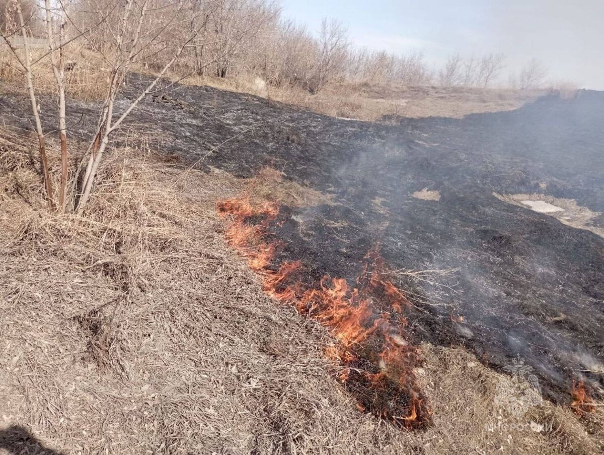 В Омске потушили пожар: сгорела трава на площади 500 кв. м.