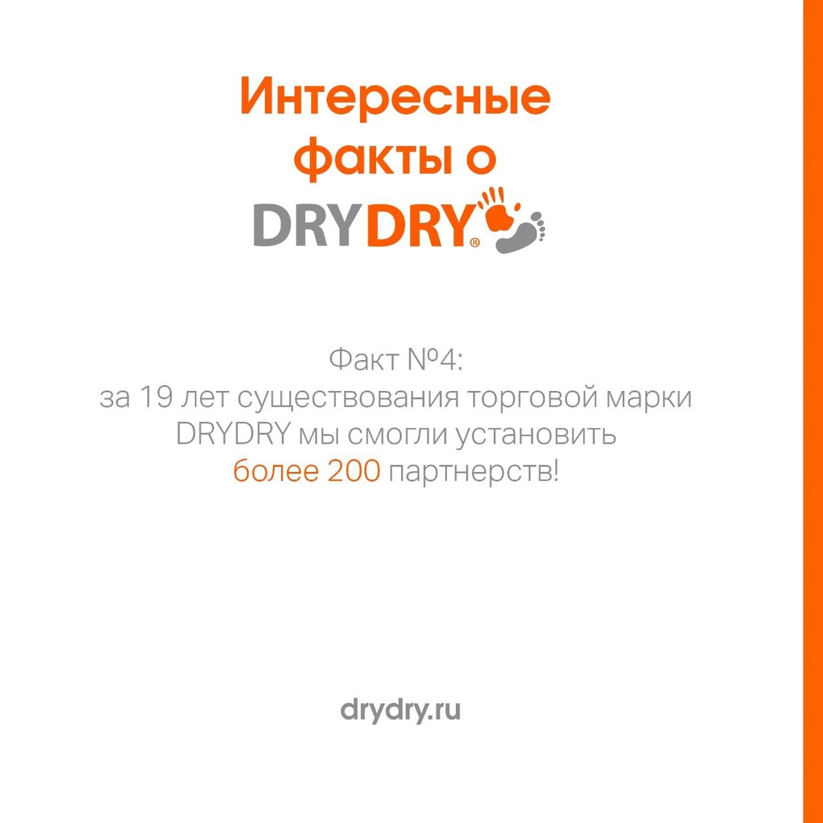 Мы часто рассказываем вам интересные факты: о праздниках, о Швеции, о наших продуктах. А теперь решили поделиться интересными фактами о… нашей торговой марке! Надеемся, эта новая рубрика будет вам полезна. И тема сегодняшнего дня: наши партнёры в России. За 19 лет существования торговой марки DRYDRY нашими партнерами стали более 200 компаний! Продукция марки стала доступна к покупке в различных местах, включая аптечные сети, маркетплейсы, магазины косметики и онлайн-площадки. Мы гордимся тем, что можем предложить вам качественные средства, которые вы можете приобрести не только на нашем официальном сайте, но и в наиболее удобном и доступном для вас месте. Спасибо, что выбираете DRYDRY! Мы продолжаем работать над тем, чтобы сделать вашу жизнь комфортнее и лучше. DRYDRY - будь собой, а мы поможем! #drydry #drydry_интересное