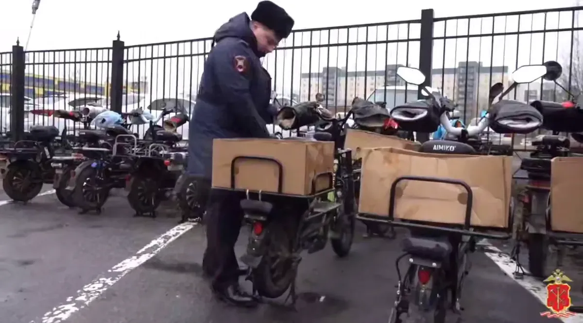 Изъятые электровелосипеды в Петербурге на аналогичном рейде. Скриншот пресс-службы полиции