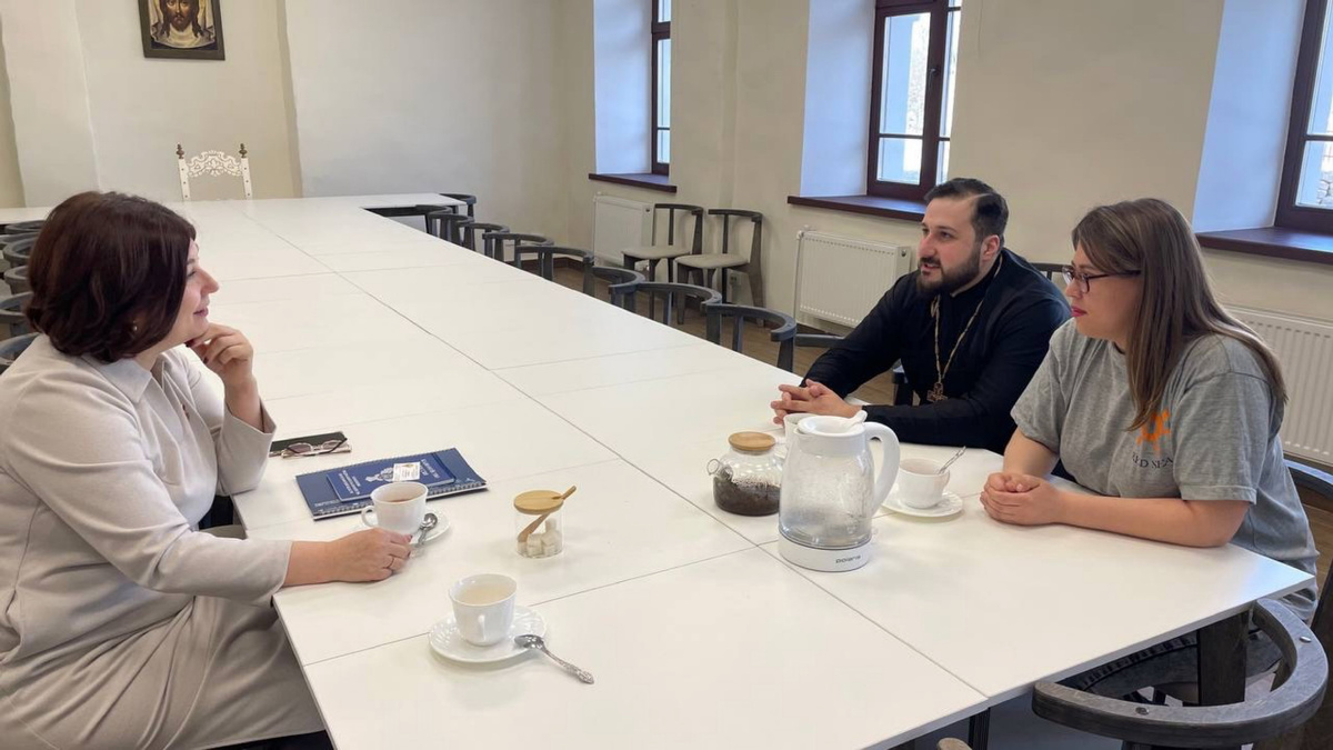 28 марта 2025 года в Молодёжном центре Псковской епархии состоялась встреча руководителя Молодежного центра «Трилучье» иерея Тигрия Агаджаняна с представителями Управления федерального казначейства по Псковской области - заместителем руководителя Инной Храмцовой и председателем Молодежного совета Виолеттой Скрылёвой. Во время встречи Отец Тигрий провел экскурсию по Молодёжному центру и рассказал о культурно-досуговых и миссионерских мероприятиях, которые проводятся участниками Центра для молодежи Пскова и области.