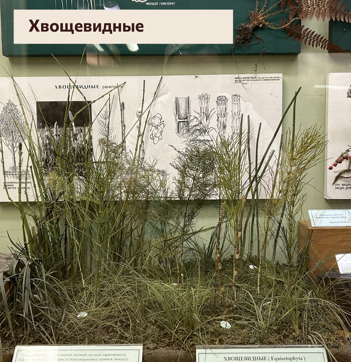 Отдел высших растений, который характеризуется наличием побегов, состоящих из четко выраженных члеников (междоузлий) и узлов с мутовчато расположенными ветвями, жёсткими покровными тканями, что связано с отложением кремния в их клеточных стенках. Размножение споровое. Половое поколение — гаметофит или заросток — недолговечное, зелёное растение величиной в несколько миллиметров. Оплодотворение совершается при наличии воды. Из зиготы без периода покоя вырастает новое бесполое поколение — спорофит. Большинство видов хвощей — сорняки. Некоторые из них лекарственные растения. Жёсткие стебли хвощей используются вместо наждачной бумаги, для чистки металлической посуды. #предметсвыставки