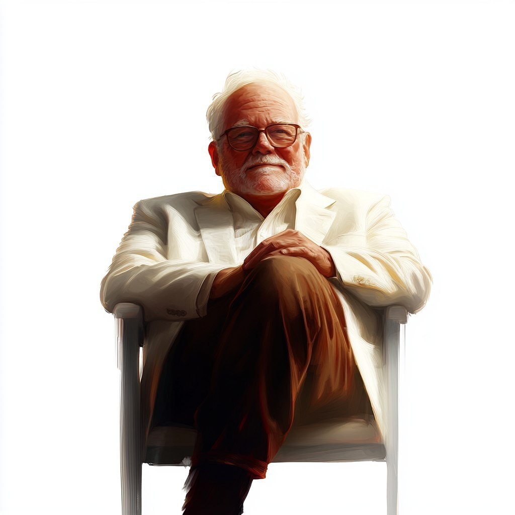 Создано на основе запроса: Kentucky Grandpa's front view, old white haired western grandfather, wearing glasses and plump. Kind. Sitting in white suit. Smiling. White background ,front view --- Автоперевод: Взгляд дедушки Кентукки, старый белый западный дедушка, в очках и пухлых. Интересно выглядит? 🤔 https://dzen.ru/id/65c0c65c86e4f837c27b24d7 #ИИ #AI #нейросеть #midjourney #art