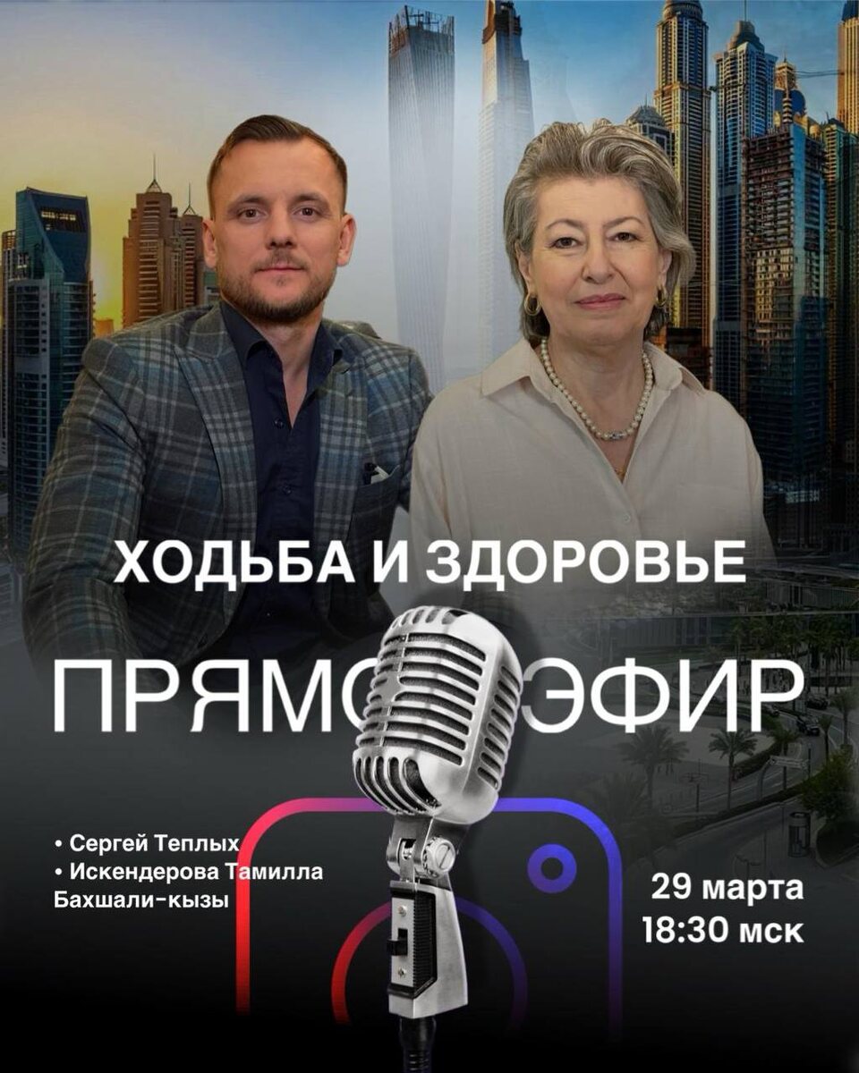 НАЧАЛА ХОДИТЬ, ХОТЯ ВРАЧИ НЕ ПОМОГАЛИ Сегодня в 18:30 МСК пройдет прямой эфир с Тамиллой Бахшали Кызы Искендировой Обсудим ходьбу и здоровье, а также личную историю Тамиллы — как ХОДЬБА помогла восстановиться, когда даже врачи давали низкие шансы ❤️ Также обсудим: ✔️ Сюцай и здоровье: основные принципы поддержания дисциплины тела по философии Сюцай ✔️ Ходьба, энергия, дисциплина ума и тела ✔️ Дата рождения: как по вашей данности понять, на какие аспекты здоровья обратить внимание Присоединяйтесь к эфиру в Instagram: https://www.instagram.com/sergei_teplykh?igsh=MXVxcmNzZnc3anZiZg==