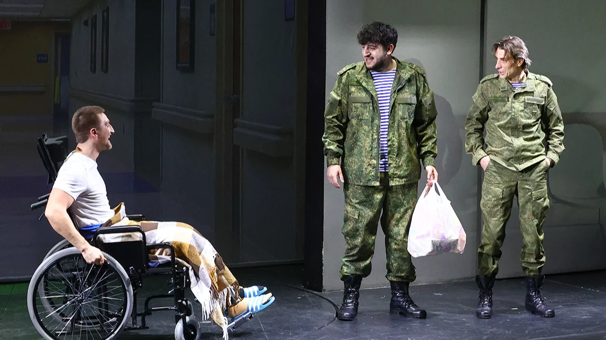 Для повышения градуса достоверности Бояков пригласил в постановку Павла Устинова, ставшего известным после задержания на Пушкинской площади якобы за сопротивление властям. За фигуранта «московского дела» Устинова выходили с плакатами «Я/Мы Павел Устинов». Тогда всё закончилось годом условно. В феврале 2020-го Устинов разыгрывал этюд на дне рождении «Гоголь-центра». А в октябре 2022 года Устинову пришла повестка, он отправился на СВО, где получил ранение.