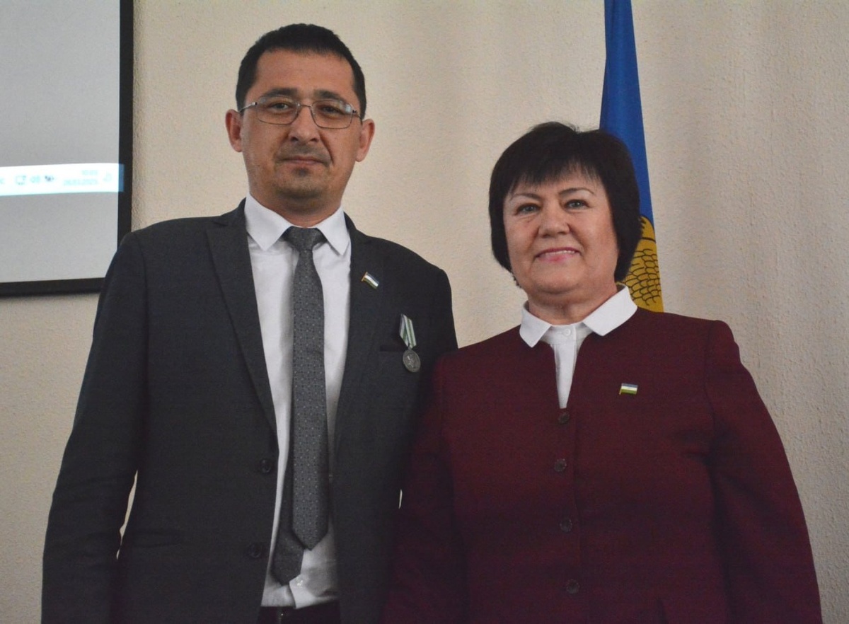 Район Советы рәйесе Дилә Хәмзина Белорет үҙәк район клиник дауаханаһының баш табибы Илдар Хәмитовҡа генерал Шайморатов миҙалын тапшырҙы