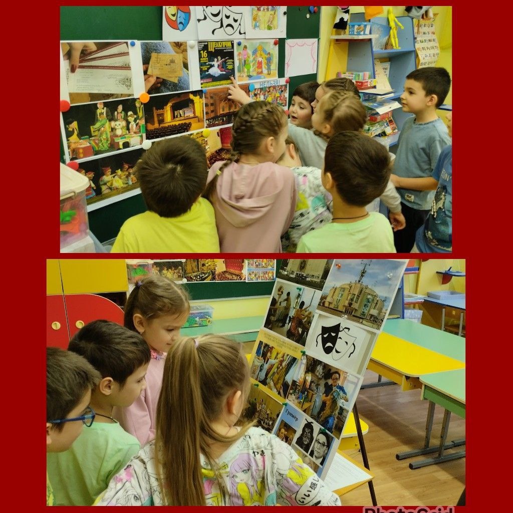 🎭 В этот день воспитанники узнали о разных видах театра и театральных профессиях. Они играли в игры «Покажи эмоцию» и «Расскажи руками», а также рисовали театральные декорации, актёров и символы театра.