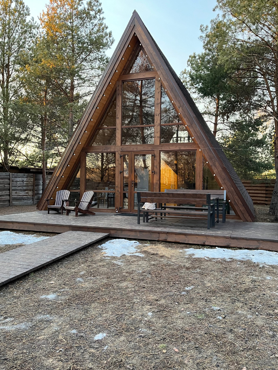 Стильный домик A-frame, расположенный в д.Агламазово Спасского района, рассчитан на проживание не более 4-х человек. Стоимость 7000-9000₽ в сутки, за дополнительную плату предлагается банный чан на открытом воздухе. Также есть очень интересное предложение - аренда домика для фотосессии 2500₽/час.