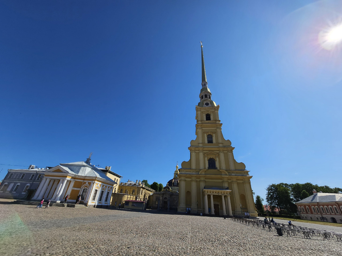 Перед первым свиданием с Петербургом я представляла его серым, хмурым и дождливым. Но город смог меня удивить и порадовать ярким солнцем. Город в лучах яркого солнца невероятно красив. Петербург летом прекрасен. При знакомстве с городом у меня в план обязательной программы входила прогулка по территории Петропавловской крепости. Именно с этой крепости началось возведение Петербурга. Если посмотреть на масштабы территории современного Санкт-Петербурга, то Заячий остров, с которого начинался город кажется совсем малюсеньким. После того, как крепость была отстроена, на ее территории начали появляться первые государственные, бытовые и духовные здания: Гостиный и Монетные дворы, Кафедральный Собор. Главным зданием крепости является Петропавловский собор, которой хранит прах членов царствующей семьи Романовых. Все надгробия выполнены из белого мрамора, лишь две могилы отличаются от остальных своим черным цветом. Это надгробия Александра II, убитого в результате теракта, и его супруги Марии