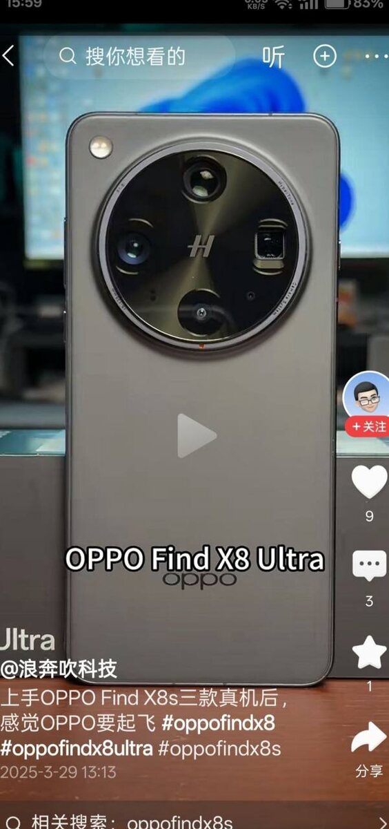 В сеть выложили полный обзор Find X8 Ultra, X8s и X8s+ за две недели до презентации Пока OPPO делится лишь фрагментами информации о будущем фотофлагмане Find X8 Ultra, китайский блогер случайно опубликовал его обзор. Хотя видео быстро удалили, интернет все помнит: подписчики успели сделать скриншоты, на которых виден не только Find X8 Ultra, но и Find X8s с X8s+. Find X8 Ultra выглядит точно так же, как на предыдущем шпионском фото, — с простым дизайном и массивной чёрной «шайбой» с четырьмя камерами и спектральным датчиком. На правом торце заметна сенсорная кнопка камеры, как у Find X8 Pro. А вот так выглядят характеристики камеры OPPO Find X8 Ultra: - 50 Мп LYT-900 с оптической стабилизацией (OIS), 1-дюймовый сенсор, диафрагма f/1,8, фокусное расстояние 23 мм. - 50 Мп JN5 с сверхшироким углом обзора. - 50 Мп LYT-700 с 3-кратным зумом (перископический телеобъектив), диафрагма f/2,1, фокусное расстояние 70 мм. - 50 Мп LYT-600 с 6-кратным зумом (перископический телеобъектив), диафра
