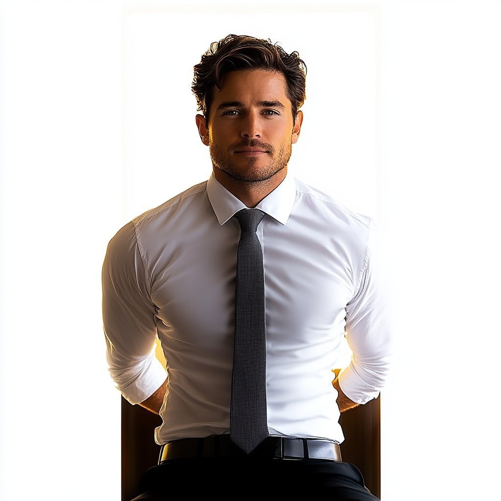 Создано на основе запроса: office worker, slim office worker in his late 30s, wearing a white shirt and tie