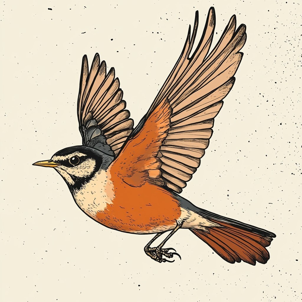 Создано на основе запроса: color book style illustration mixed with birding illustration of the bird american robin. flying --- Автоперевод: Цвет книга Стиль иллюстрация, смешанная с птицами иллюстрацией птицы Американского Робина. Неплохо вышло? 🤔 https://dzen.ru/id/65c0c65c86e4f837c27b24d7 #ИИ #AI #нейросеть #midjourney #art