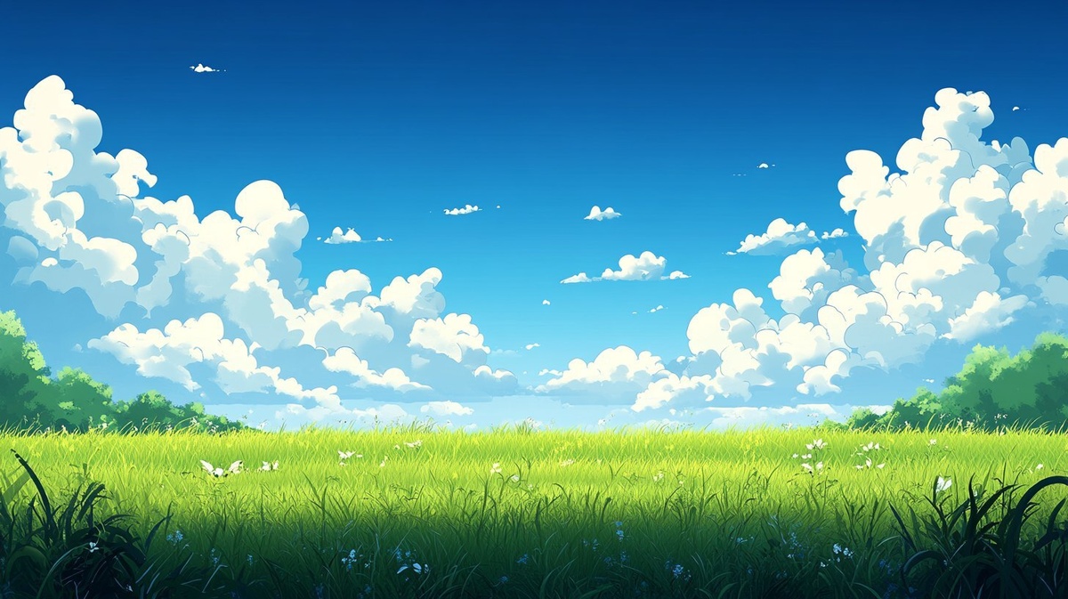 Создано на основе запроса: flat Green Grassland With Blue Sky Background, video game style