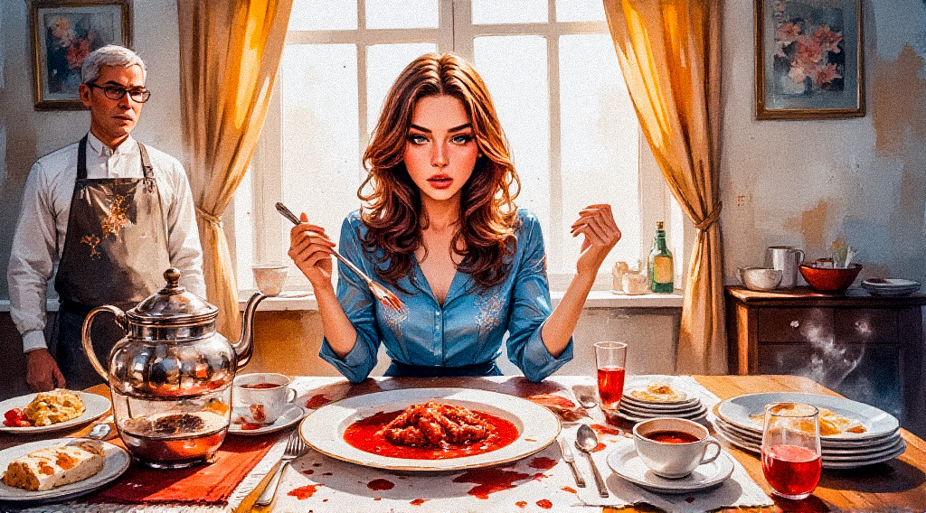 За ужином, куда Кристина всё-таки вышла, повисла тяжёлая тишина. Лязганье вилок о тарелки казалось особенно громким. Отец сосредоточенно ел, изредка поглядывая на дочь поверх очков.