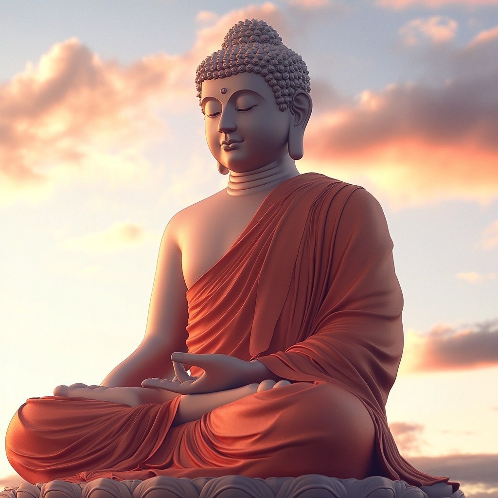 Создано на основе запроса: A majestic and serene Buddha sitting in meditation, with a peaceful and awakened expression, wearing a flowing saffron-red robe fluttering gently in the morning breeze, hands placed in a meditation mudra. The soft morning sunlight shines from behind his back, creating a gentle rim light around his head and shoulders. Thin clouds drift slowly in the background, enhancing the tranquil and sacred atmosphere. The scene evokes a deep sense of calm, reverence, and spiritual enlightenment. --- Автоперевод: Величественный и безмятежный Будда, сидящий в медитации, с мирным и пробужденным выражением, в том, что в утреннем ветру нежно развернулась плавная шафрановая халата, осторожно развевавшаяся руками. Как тебе такая картинка? 🤔 https://dzen.ru/id/65c0c65c86e4f837c27b24d7 #ИИ #AI #нейросеть #midjourney #art