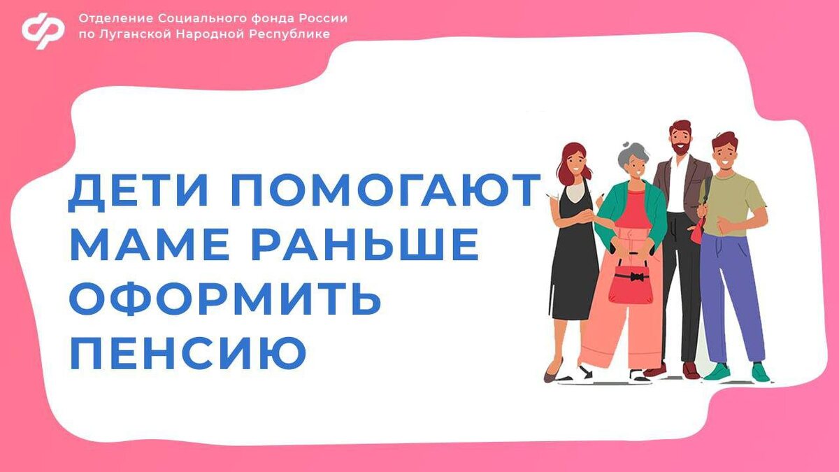 Более тысячи многодетных мам в ЛНР вышли на пенсию досрочно Многодетные мамы, воспитывающие трех и более детей, вправе выйти на пенсию по старости раньше общеустановленного возраста. Для этого всем детям должно быть более 8 лет, а рабочий стаж женщины не менее 15 лет. Оформить пенсию они могут: — в 57 лет, если родили и воспитали 3 детей; — в 56 лет — 4 детей; — в 50 лет — 5 и более детей. При этом мамы двух и более детей, которые имеют страховой стаж не менее 20 лет и проработали не менее 12 календарных лет в районах Крайнего Севера или не менее 17 лет в приравненных к ним местностях, также могут уйти на отдых в 50 лет. ————— Поддержите канал Подпиской на "Сыны Отечества" или Голосом за канал ✅ подписаться |⚡️проголосовать 📲Наш проект в социальных сетях: Вконтакте, Одноклассники, Дзен, RuTube