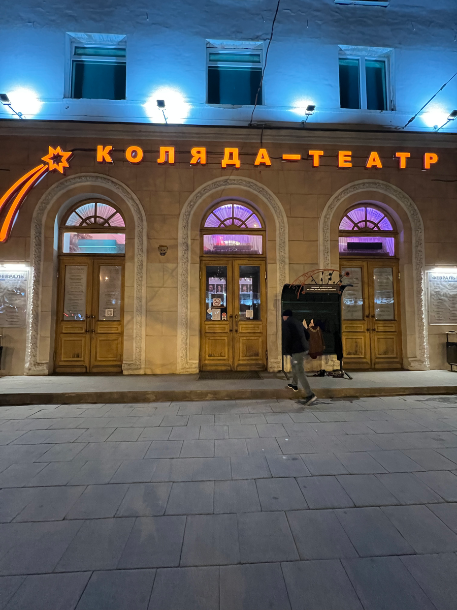 В один из вечеров в Екатеринбурге мы решили сходить в театр. Учитывая казанский опыт, ожидали, что в театр надо покупать билеты сильно заранее, но на всякий случай глянули афишу (Яндекс Афишу). На удивление в афише обнаружили прям на сегодня (в искомый вечер) билеты на спектакль «Ночь игуаны». И места хорошие, и недорого, и даже единственный отзыв, который был о спектакле, был восторженный от благодарного зрителя, и оценка театра самая высокая (ну почти самая высокая). Думаю, ну точно супер, это нам очень повезло, не откладывая дело в долгий ящик, я купил билеты и уже предвкушал уютный, увлекательный вечер. В театре нас встречала очень веселая девушка, спросив которую, правильно ли мы пришли, получили утвердительный ответ, после чего нам было предложено пройти в гардеробную и далее проследовать к залу ожидания или пройти в буфет, где можно выпить чашечку кофЭ или чего покрепче. В буфете на синтезаторе играла пианистка в очень смешном костюме, больше похожая на какого-то мультяшного пе