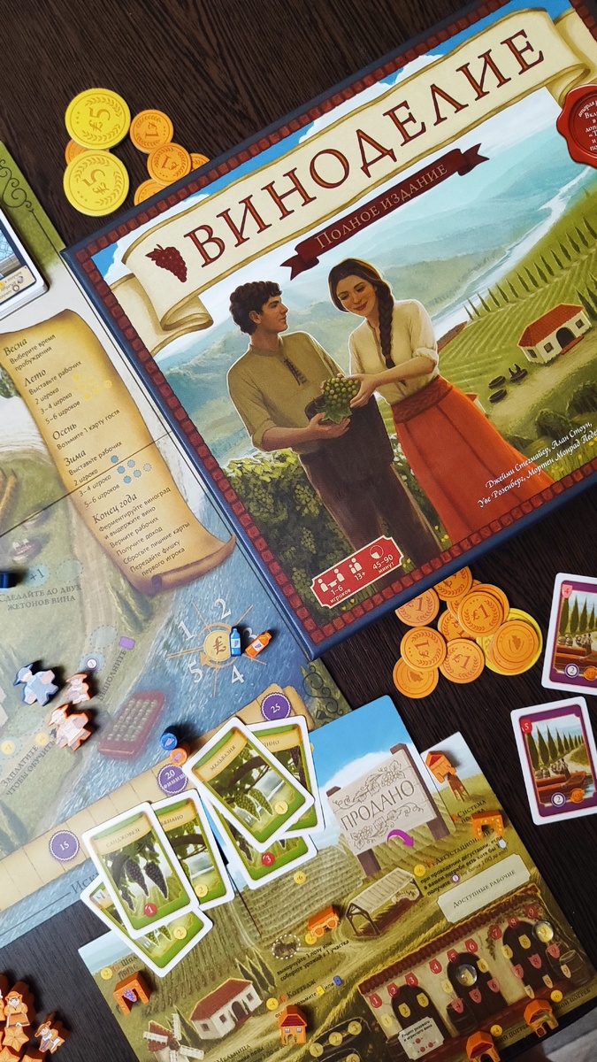 «Ничего не понятно, но очень интересно», — примерно такие мысли возникли у меня после знакомства с настольной игрой «Виноделие» от издательства Лавка Игр, которую нам на днях приносили на игровую встречу друзья 😁 но обо всём по порядку