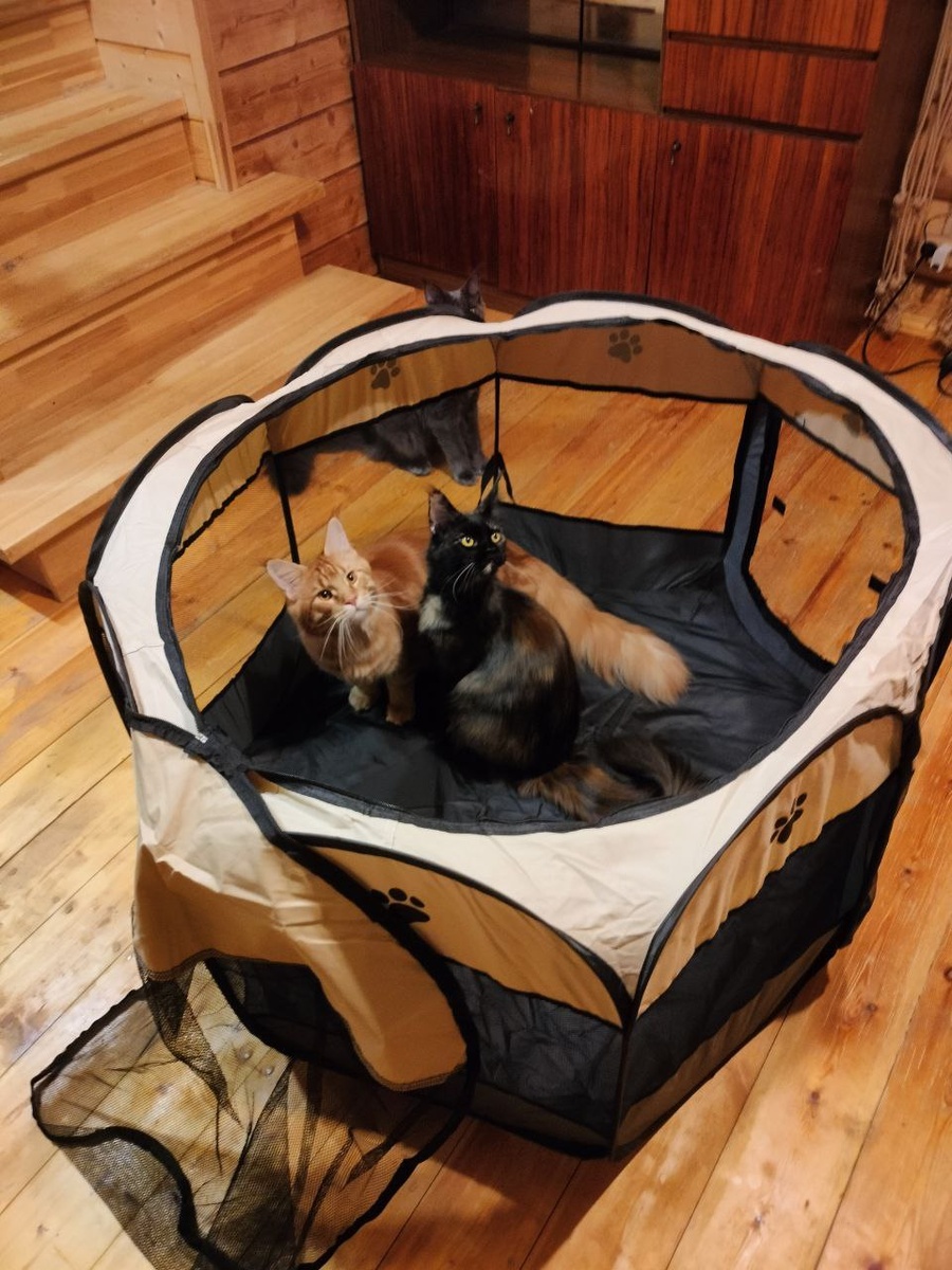 Всем доброго времени суток✋ На выставке, у соседей заводчиков, подсмотрела вот такую палатку. Начала искать в интернете, оказывается, она не просто палатка, а родильный манеж для котят. И на Озоне на нее сейчас какая то сумасшедшая скидка!!! Вот, конструкция пришла. Раскладывается в 2 секунды, включая извлечение из пакета. Хвостикам нравится. Недостатки выяснятся в процессе эксплуатации. Пока все придраться не к чему😁 #КотоУход