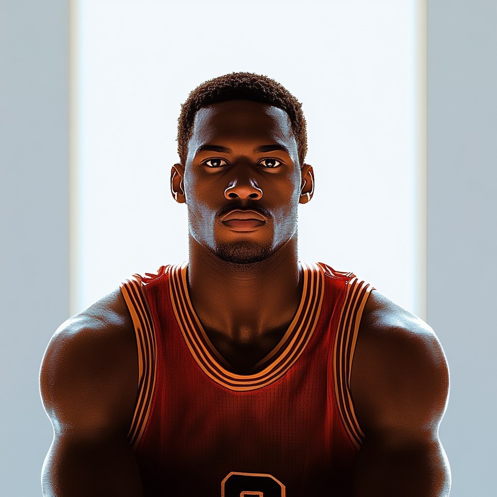 Создано на основе запроса: Jordan in his younger days, basketball player, front view, upper body, white background of a young black American basketball player