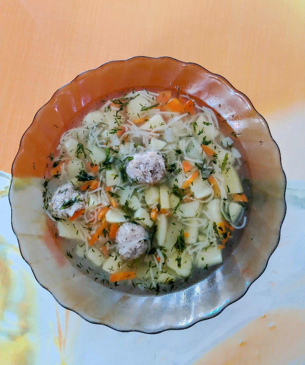 Уложила мальчугана спать, сварила суп с фрикадельками.