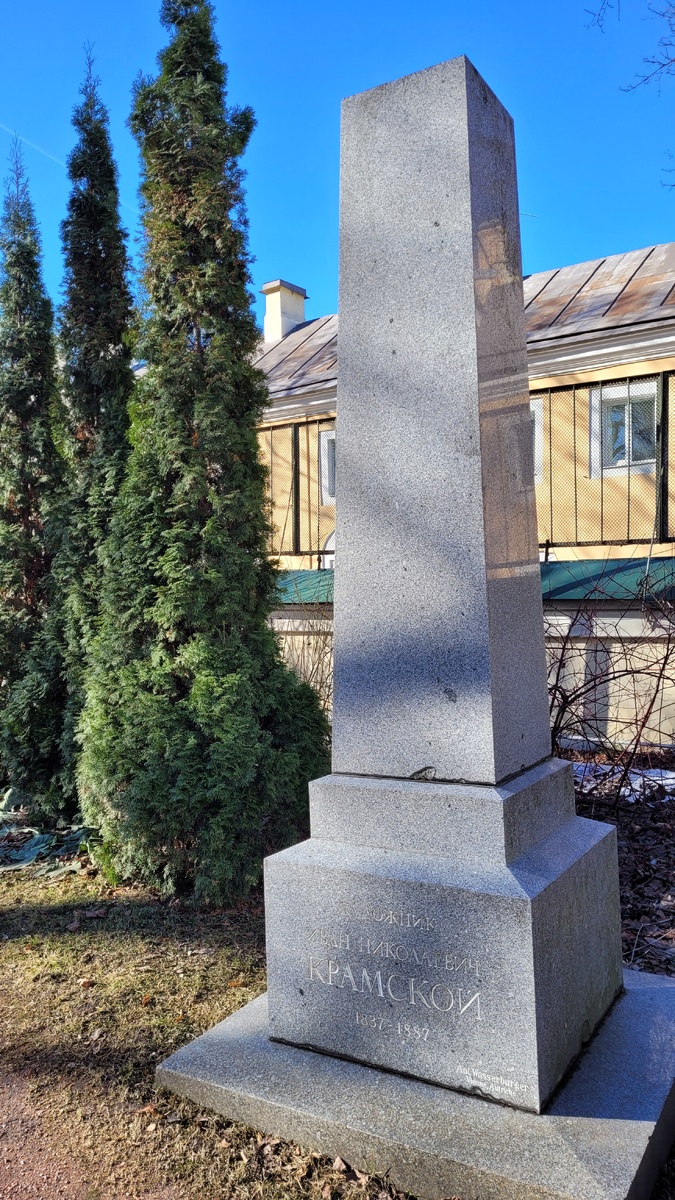 Сегодня посмотрим на площадку художников и скульпторов в Некрополе. Иван Николаевич Крамской (1837-1887) - художник. Известные работы: Христос в пустыне, Русалки, портрет Л.Н. Толстого, портрет И.И. Шишкина, портрет императрицы Марии Федоровны, портрет Александра III, Неизвестная и др. Изначально художник был похоронен на Смоленском православном кладбище в Санкт-Петербурге и лишь в 1939 его прах был перенесен на Тихвинское кладбище (Некрополь мастеров искусств), тогда же установили новый памятник. Иван Иванович Шишкин (1812-1898) - художник, один из членов-учредителей общества художников-передвижников. Известные работы: Утро в сосновом лесу, Корабельная роща, Рожь. Был похоронен на Смоленском православном кладбище в Санкт-Петербурге. В некрополь прах и надгробие перенесли в 1950 году. Алексей Петрович Боголюбов (1824-1896) - художник-маринист. Известные работы: Синопское сражение, Афонское сражение, Морской бой. Пленение фрегатом «Владимиром» турецкого парохода «Перваз-Бахри». Был похо