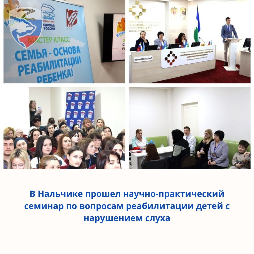 В рамках реализации мероприятий партийного проекта «Крепкая семья» на площадке Республиканского детского клинического многопрофильного центра Минздрава КБР прошел семинар «Семья – основа реабилитации ребенка. Современные аспекты реабилитации детей с нарушением слуха»