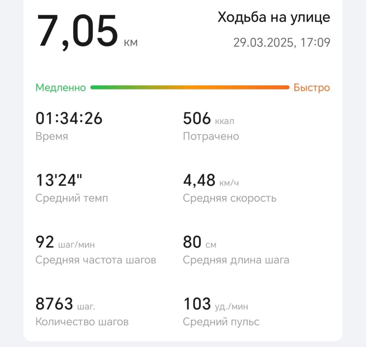🙂 Я почти как ждун. 🗓 29.03.25 💪 День похудения: 80 ⏱ 01:34:26 🗺 7.05 км 🏄♂️ 506 ккал 💪 Легкая прогулка, пока ждал семью с занятий. 🎂 Теперь едим в гости на день рождения. ✍️ Присылайте в комментарии свои активности за день! #жжем_калории 😎 Roman Legas | Life