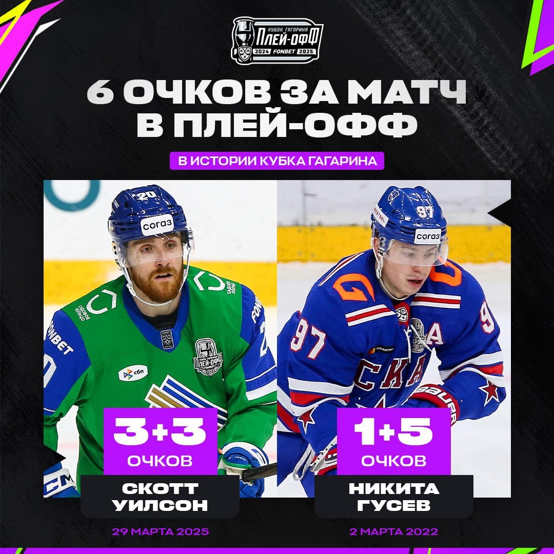 В ответ на пост 😱 Всего лишь второй случай в истории КХЛ Скотт Уилсон стал первым в истории хоккеистом «Салавата Юлаева», набравшим шесть очков в одном матче Кубка Гагарина. 32-летний канадец забил три гола и сделал три ассиста в игре с «Сибирью» (8:2). До него подобное удавалось только действующему игроку московского «Динамо» Никите Гусеву. В 2022 году форвард, выступая за СКА, забросил шайбу и сделал пять передач в матче с минским «Динамо» (8:3). @russian_rt_sport